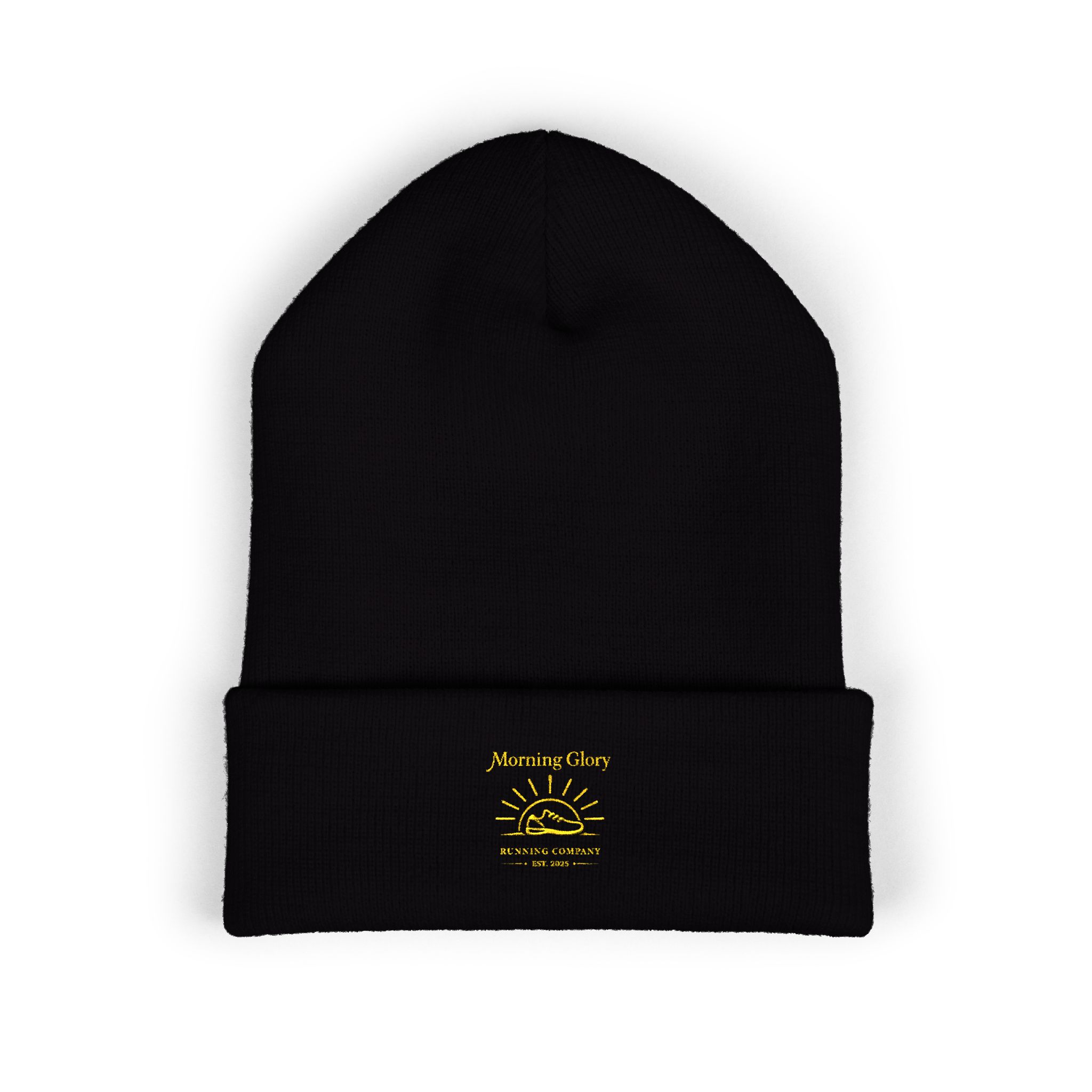 The Luxe Logo Beanie features a clean silhouette finished with a subtle gold Morning Glory logo, adding just enough polish without losing its everyday feel.