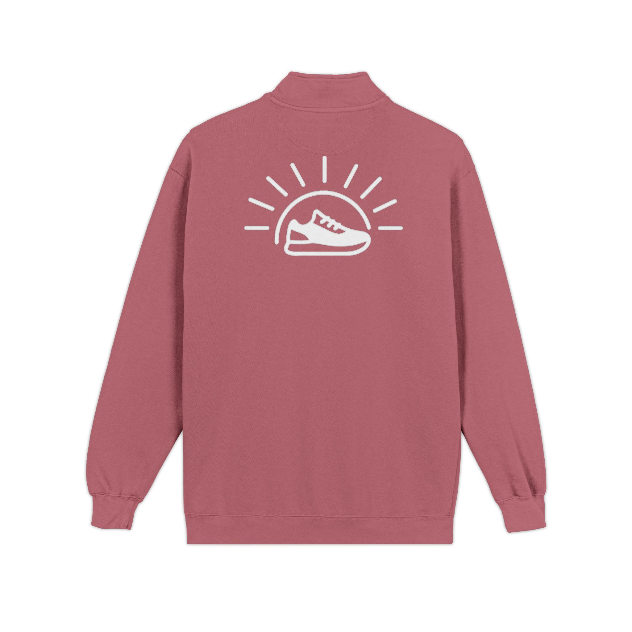 This heavyweight quarter-zip delivers warmth without stiffness, moving easily through long runs, cool downs, and unhurried coffee stops. The raised collar blocks wind while the zip lets you regulate heat as conditions change.