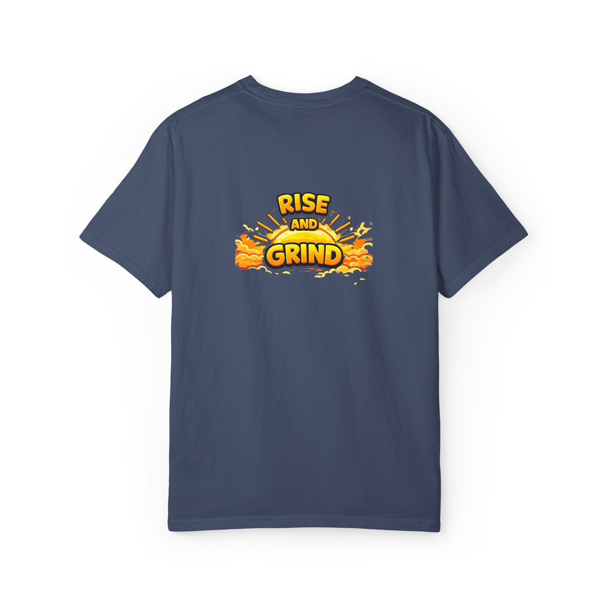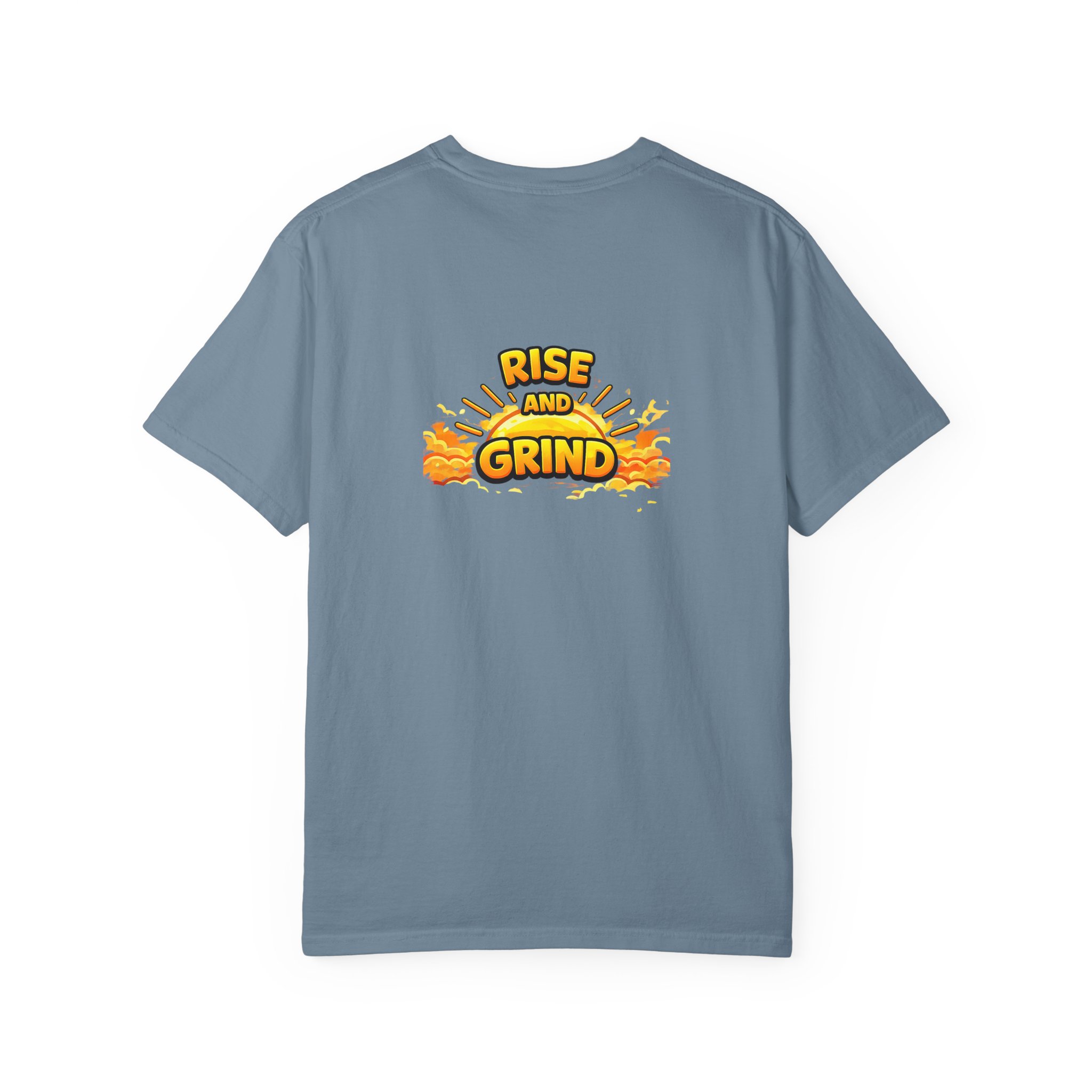 This Comfort Colors tee balances understated branding with a strong message. A small logo sits on the front, paired with “Rise and Grind” across the back — confident without feeling loud.